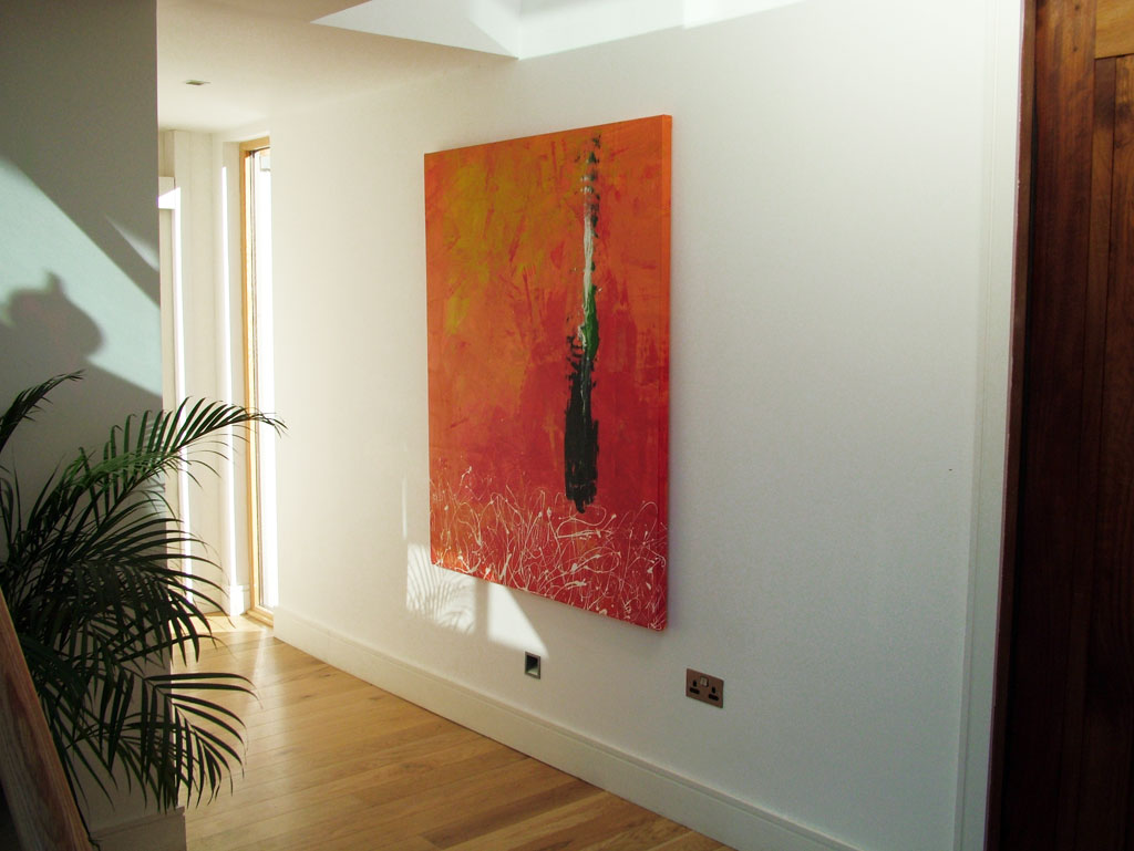 - ‘Prometheus’ hanging in the main living space. The long strokes add depth to the wall space.